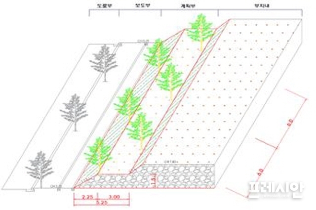 ▲양산시에서 내놓은 '시민 숲길' 조성안 단면도.ⓒDB양산시