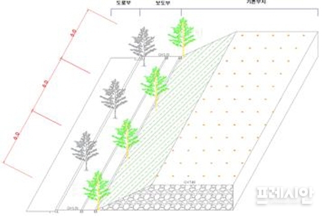 ▲부산대에서 채택한 ‘시민 숲길’ 조성안 단면도.ⓒDB양산시