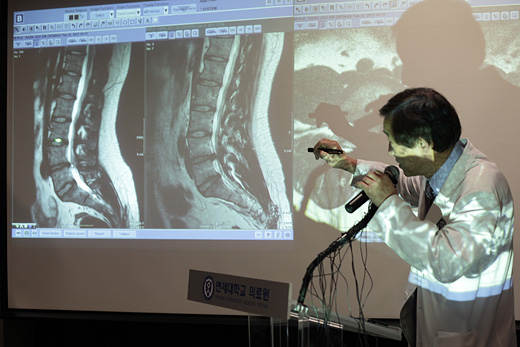 세브란스 병원 신경외과 윤도흠 교수는 이날 기자들과 만나 "MRI를 판독한 결과, 병무청에 제출한 MRI사진과 마찬가지로 제4요추에 추간판 탈출증이 발견됐고 방향이 동일하며 피하지방 두께 그리고 척추와 다리를 연결하는 부분, 후관절의 곽도와 퇴행정도를 볼 때 동일한 인물의 사진이다"며 "디스크가 맞다"고 설명했다.