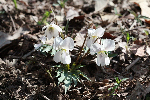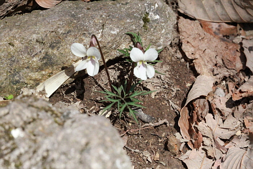 그래도 아주 심심하지는 않게 꽃들이 나타났다. 잎이 고깔처럼 또르르 말려나오는 고깔제비꽃이 돌 틈에서 나오고 있다. 제비꽃은 그 종류가 많다. 이날 백암산에서 본 제비꽃은 남산제비꽃, 왜제비꽃, 둥근털제비꽃, 단풍잎제비꽃 등이었다.