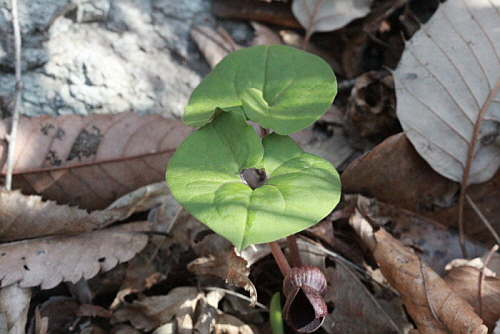 개족도리는 바닥 아주 가까이에 붙어 있다. 하트 모양의 잎이 두 장 나오고 그 아래에 꽃이 하나씩 달려 있다. 땅 너무 가까이라 꽃은 흙을 묻히고 있다. 그냥 얼굴이 흙에 묻은 것도 있지만 빗물에 튀긴 흙은 꽃잎의 뒤통수에 들러붙어 딱딱하게 마르고 있기도 하다. 웬만해서는 떨어지지 않을 것 같다. 이만한 높이에 이처럼 푹신한 곳에 언제 앉아 보겠느냐는 것이다.