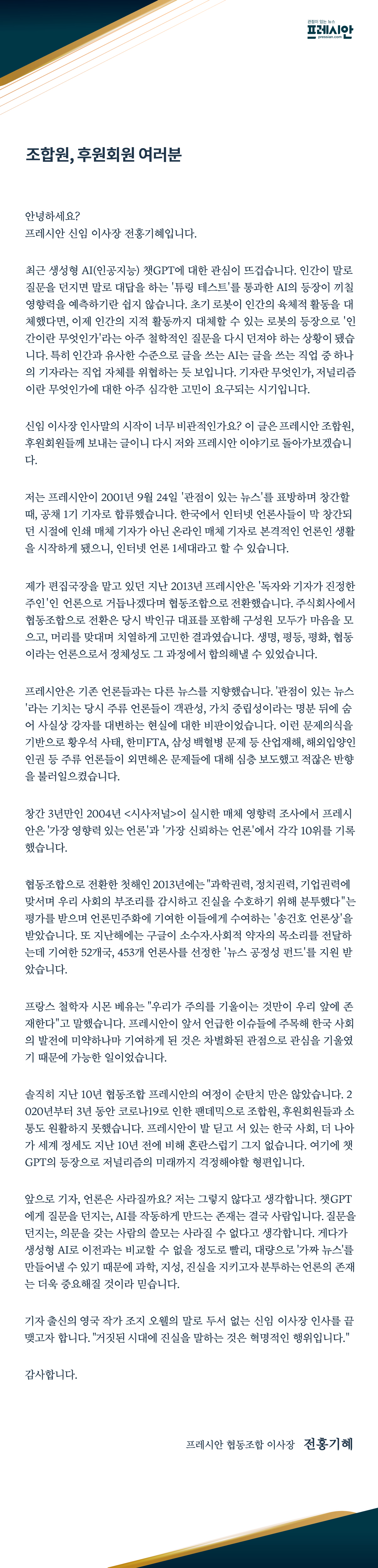 [뉴스레터 218호] 프레시안 신임 이사장 전홍기혜입니다