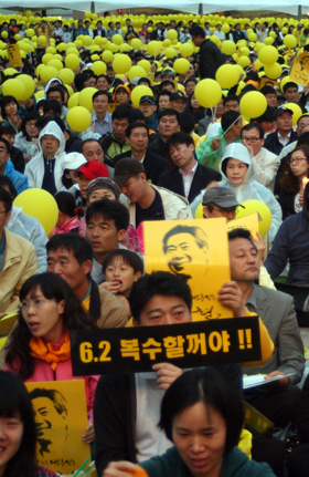 서울광장에 모인 시민들은 노란색 바탕에 검정 글씨로 '6.2 복수할거야!!', '바보들, 바보를 추억하다' 등의 문구가 적힌 피켓을 손에 들고 있었다. 반대 손에는 노란색 풍선을, 왼쪽 가슴에는 노란색 리본을 달고 있는 시민들도 상당수였다. 서울 광장은 노란색 물결이었다.