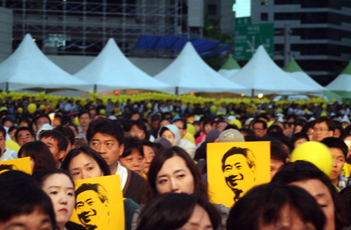 유시민 경기도지사 후보는 이렇게 말하며 노무현 전 대통령을 애도했다. 그를 따라 서울광장에 모인 3만여 명의 시민들도 함께 "사랑합니다"를 외쳤다. 23일 서울광장과 부산대학교에서는 노무현 재단, 노사모, 시민광장 등 주최로 노무현 전 대통령 서거 1주년 추모 문화제 'power to the people' 이 동시에 열렸다. 이날 문화제는 이원 생중계로 진행됐다.