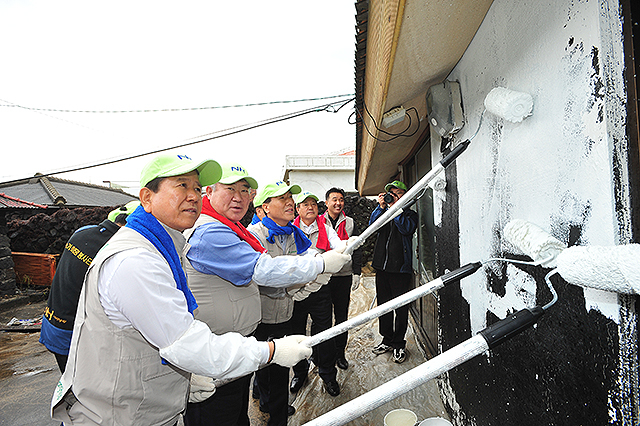 농협중앙회(회장 최원병)는 지난달 11월 26일 제주지역을 방문하여 사랑의 집 고쳐주기 봉사활동을 전개하고 마을에는 냉장고와 생활용품 등을 기증했다. 이날은 특별히 국회 농림축산식품해양수산위원회 김우남 위원장과 농협중앙회 최원병 회장이 현장을 방문해 봉사단원을 격려하였고 집수리 봉사활동 체험 기회도 가졌다.