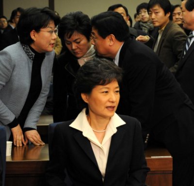 이날 여의도 한나라당 당사 바로 맞은 편 대아빌딩에 모인 박 전 대표 측 인사들의 표정은 비상한 상황에서도 오히려 밝았다.