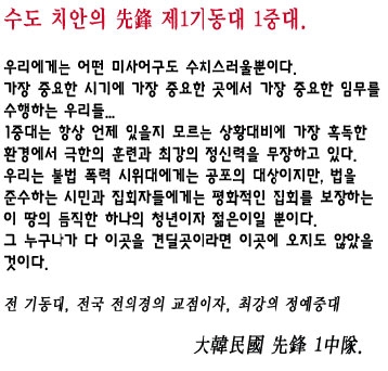 "우리는 불법폭력시위대에는 공포의 대상이다"고 자랑하는 서울경찰청 1기동대는 70대 농민이 강경진압에 의해 사망한 지난 2005년 말 농민집회에도 투입됐던 부대다.