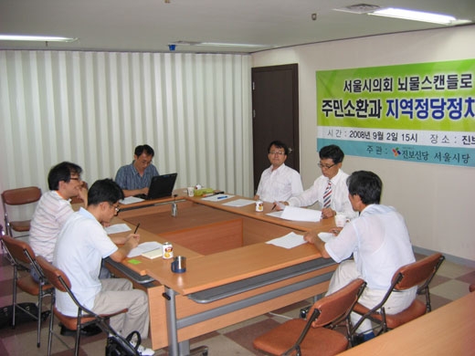 사회: 오늘 이 자리는 지난 7월에 발생한 서울시뇌물스캔들 이후 진보신당 서울시당이 <프레시안>에 실은 5차례의 릴레이 기고를 정리하는 자리입니다. 원래 릴레이 기고가 마치면 바로 하려했으나 8월 26일 서울시의회 임시회가 개최되는 관계로 좀 더 추이를 지켜본 후 좌담회를 실시해도 좋겠다 해서 오늘 열게 되었습니다.