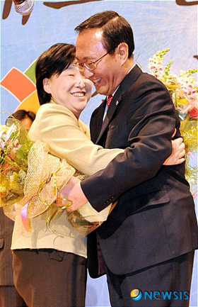 | ▲ 심상정 전 의원의 축하를 받고 있는 노회찬 대표ⓒ뉴시스 |