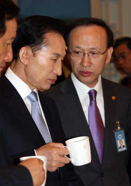 | ▲ 개성 억류자 석방을 위해서는 '확성기'가 아니라 고통스런 성찰이 우선 필요하다. 이명박 대통령과 현인택 통일부 장관 ⓒ연합뉴스 |