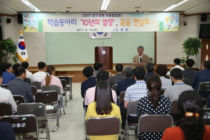 고흥군은 지난 9월 13일, 군청 대회의실에서 공직자·군민으로 구성된 학습동아리 13개 팀 134명을 비롯하여 내·외부 심사위원단, 실과소‧읍면장, 연구과제 관련 공직자 등 200여 명이 참석한 가운데 ‘학습동아리 연구과제 최종발표회’를 개최하였다.