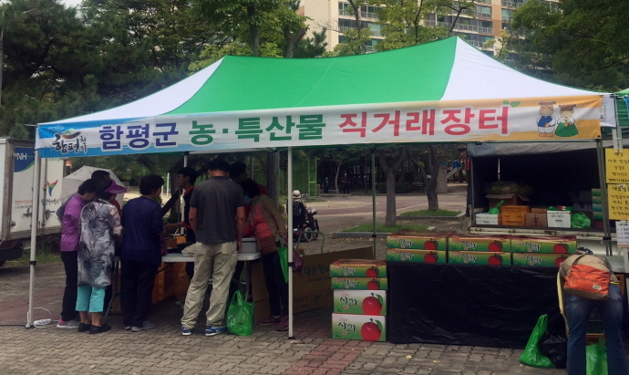 함평군과 함평군여성단체협의회가 지난 16일 광주시 치평동주민센터에서 농특산물 직거래장터를 운영했다.