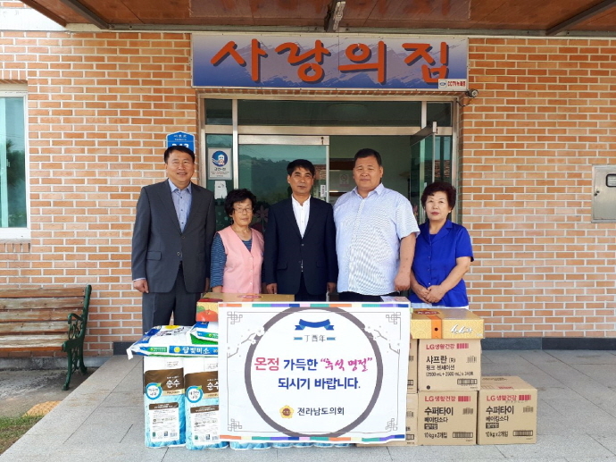전남도의회 경제관광문화위원회 김연일 위원장(영암 2, 더불어민주당)은 25일 한가위를 맞아 영암군 서호면 소재 노인요양시설 ‘사랑의 집’을 찾아 생활인들에게 필요한 생필품을 전달하고 어르신들을 위로하는 등 따뜻한 이웃사랑을 실천했다.