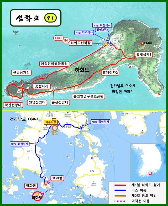 2020년 7월 4(토)-5(일)일, 섬학교 제91강의 답사 코스는 다음과 같습니다.