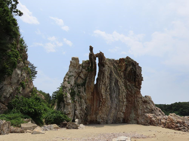 대청도의 미아해변과 농여해변은 국가지질공원의 일부다. 농여해변의 나이테 바위는 지층이 세로로 서 있어서 10억 년에 일어났던 강력한 지각 변화의 힘을 느끼게 한다. 해변은 시간의 화석이다. 만 권의 책으로도 모자랄 지상의 비밀들, 차곡차곡 쌓인 시간의 화석.