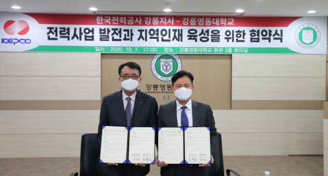 한국전력공사 강릉지사(지사장 김준호)는 강릉영동대(총장 김제홍)와 7일 학교 교무회의실에서 ‘전력산업 발전 및 지역인재 육성을 위한 업무협약’을 했다.