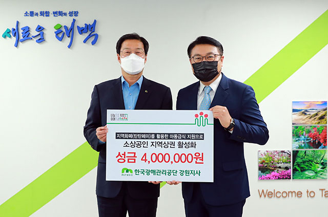 한국광해관리공단 강원지사(지사장 양인재)는 10일 태백시청을 찾아 20만 원씩 적립된 탄탄페이 카드 20매(총 400만 원)를 후원했다.