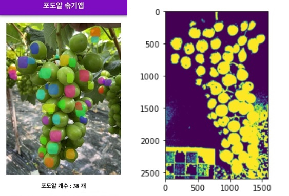 이 앱은 인공지능(AI)에 기반한 반복 학습을 통해 송이 테두리가 흐릿하고 배경과 겹쳐도 포도알과 송이 모양을 인식하도록 했다.