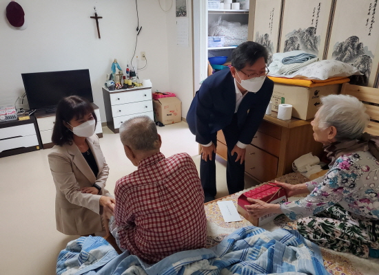 전북농협은 10일 사회적 거리두기 강화로 추석명절을 가족들과 함께 지내지 못하는 전북동부보훈지청 재가복지서비스 대상 50가정에 우리농산물로 만든 송편 등을 전달했다.