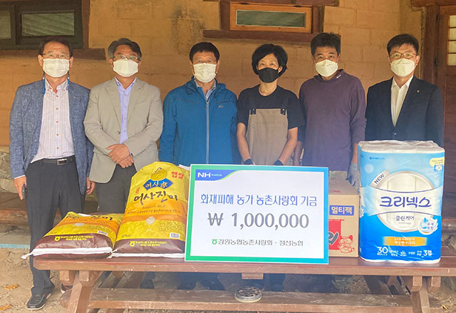 한편, 정선농협(조합장 김영남)과 농협 정선군지부(지부장 강희철)는 이날 농촌사랑회 기금과 쌀, 라면 등 생필품을 전달하고 위로했다.