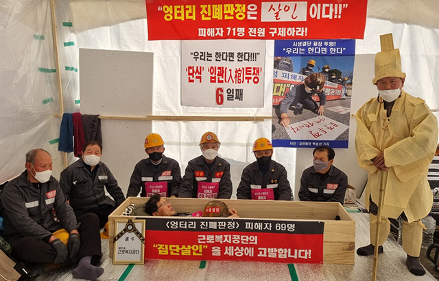 한편, 태백·정선·영월·삼척·동해·강릉을 비롯한 전국 지회로 구성된 광산진폐권익연대는 오는 21일 오후 1시 30분 강원도청 앞 광장에서 엉터리 진폐장해 판정 피해자 전원을 구제하기 위한 단식투쟁 종료 선포식 및 기자회견을 가질 예정이다.