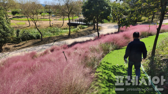 특히 이번 2023 대한민국 국향대전의 주제인 '나를 위한 행복여행 in 함평 국화'와 알맞게 두 손으로 선물 상자를 받치고 있는 듯한 모습의 '함평선물상자', 인근에 조성된 핑크뮬리존·9층탑 등이 눈길을 끌었다.
