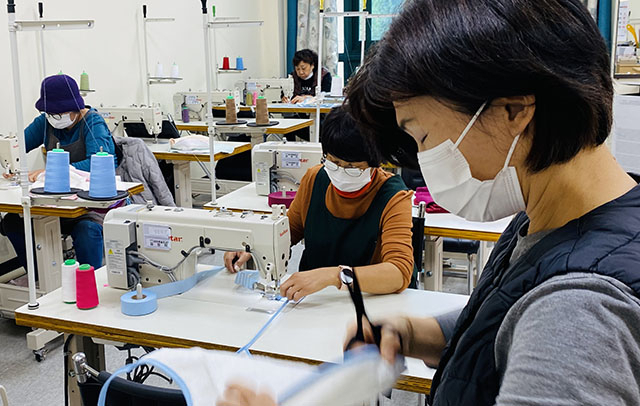 정선군종합사회복지관(관장 주상현 신부)은 지난 13일 ‘친환경 에코맘’ 프로그램 자조모임 참여자들이 제작한 턱받이 220여 개를 지역 내 노인요양시설과 장애인생활시설 4곳에 전달했다고 15일 밝혔다.