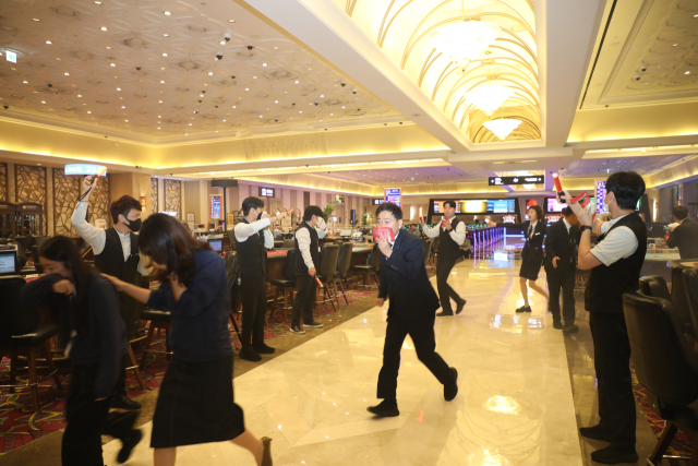 훈련에서는 카지노 ․ 호텔 등 고객밀집지역에서 동시다발적으로 지진과 정전이 발생한 가상 상황에서 유관기관 간 재난 대응 공조 체계를 점검했으며, 대피 유도, 인명 구조, 환자 응급처치 등 단계별 행동 요령 등에 대해 교육했다.