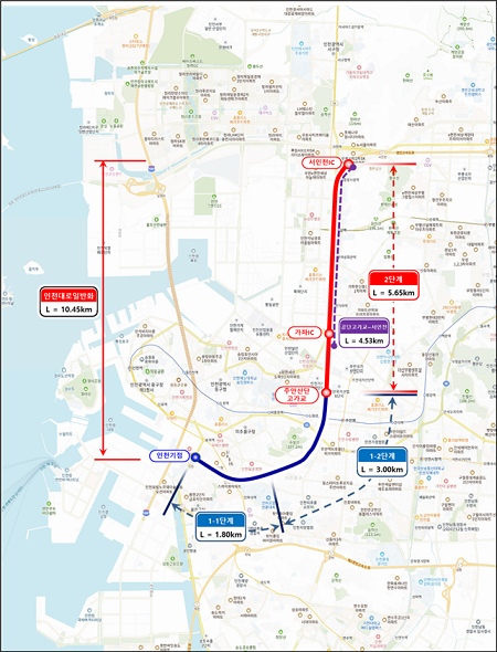 인천광역시는 인천대로 일반화 도로개량공사 2단계 구간을 다음 달 착공한다고 23일 밝혔다. 인천시는 1-1단계인 인천기점~독배로, 1-2단계 독배로~주안산단고가교, 그리고 2단계인 주안산단고가교~서인천IC로 세분화해 추진해 왔다.