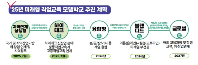 도교육청은 이 같은 문제를 보완하고, 직업계고의 미래교육 재구조화를 통해 직업계고의 경쟁력 강화 및 지역산업 맞춤형 인재를 양성하기 위해 도교육청은 △지역연계 상생형(경기협약형) 특성화고 △하이테크 특성화고 △융합형 특성화고 △블렌디드(혼합형) 특성화고 △글로벌 특성화고 등 5개 유형의 미래형 직업교육 모델학교를 오는 20274년까지 단계별로 추진한다.