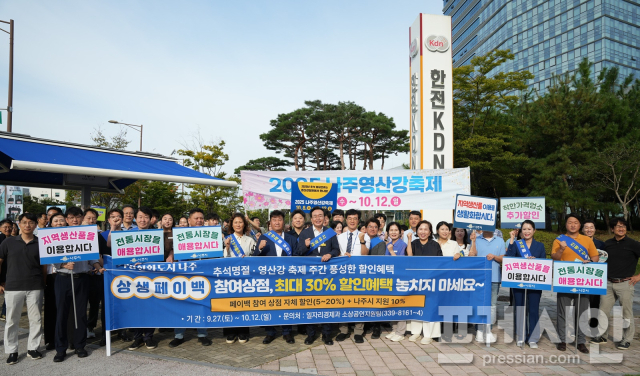 전남 나주시(시장 윤병태)가 추석 명절과 오는 10월 8∼12일까지 열리는 '나주영산강축제'를 앞두고 지역 골목상권 활성화를 위한 '상생 페이백 행사' 캠페인을 24일 진행했다.