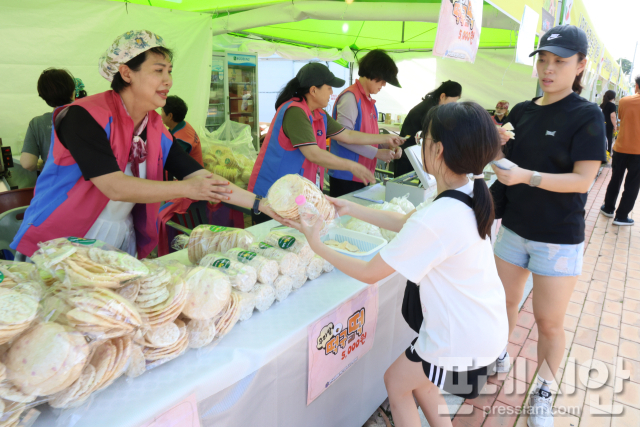 이근경(61) 한국생활개선회청주시연합회장은 “저희는 순수하게 농업을 짓는 여성 농업인으로 농업기술센터 내 학습단체입니다. 요즘 젊은이들이 이제 쌀을 주식으로 먹지 않다보니 농가가 어렵고 힘들어서 쌀 핫도그, 쌀 인절미, 떡국 떡, 쌀 뻥튀기로 쌀을 홍보하는 차원에서 나왔다”며 “여기서 나오는 수익금으로 불우이웃돕기 성금도 기탁할 예정이다”라고 말했다.