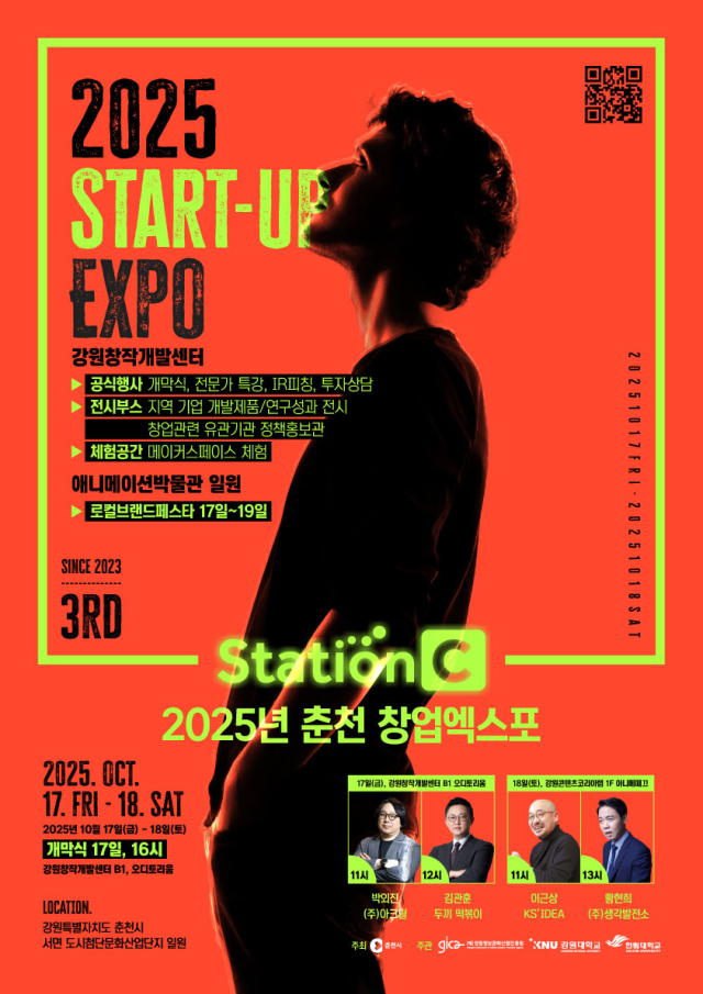 춘천시(시장 육동한)는 17~18일 이틀간 서면 도시첨단문화산업단지 일원에서 ‘2025 제3회 춘천 Station C 창업엑스포’를 연다.
