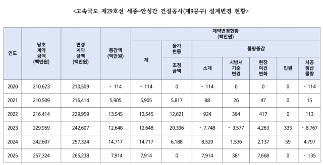 세종 안성 고속도로 9공구 5년간 설계변경으로 546억원 추가 공사비 발생