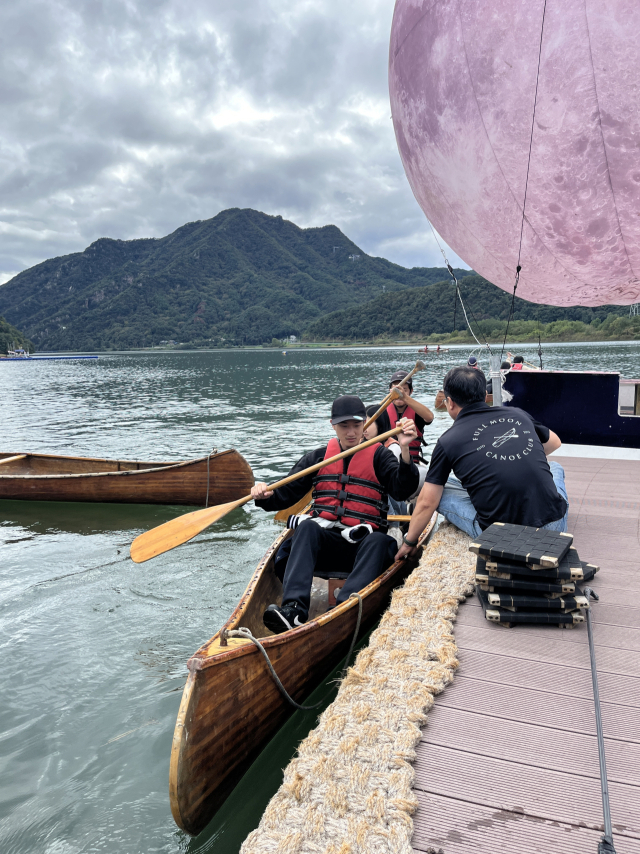 이날 미디어콘텐츠과 학생들은 춘천시 송암동에 위치한 물레길에서 우든카누를 직접 타며 수상 환경과 레저 활동을 몸소 체험했다.