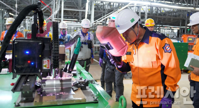 전남소방본부 주영국 본부장이 HD현대삼호(대표 김재을) 영암 본사를 방문해 조선소 작업 현장을 점검하고 화재 예방 등 안전관리 강화를 당부했다.