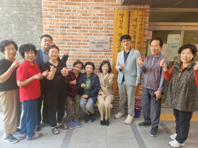 양산대방노블랜드7차경로당은 회원수 62명으로 건강백세운동교실과 노래교실 등 다양한 프로그램을 운영하고 있다.