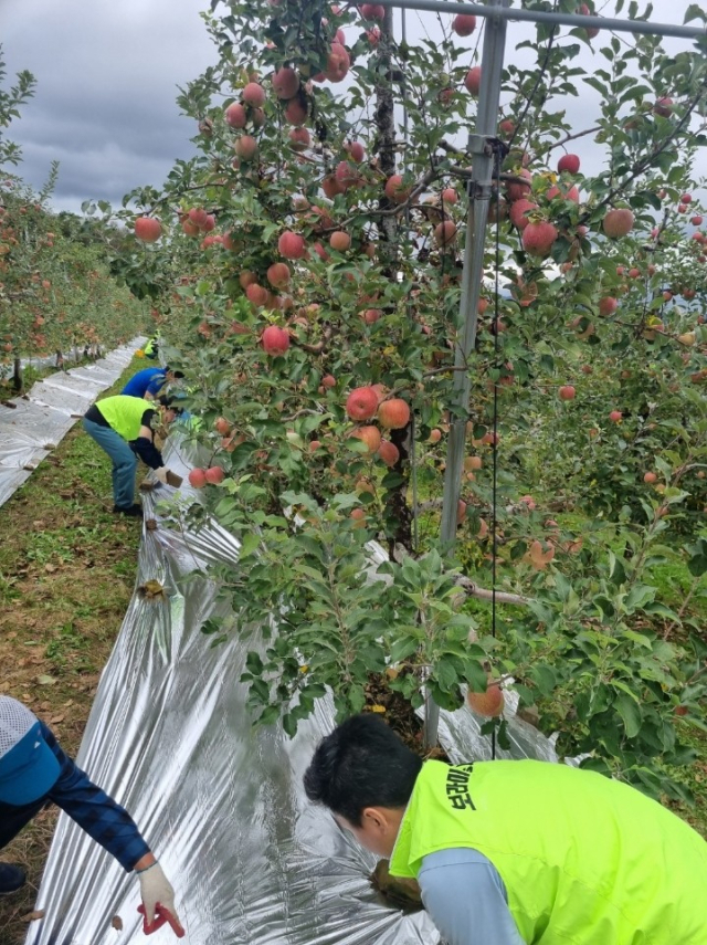 이날 봉사단은 양구군농협 조합원인 이의덕 농가를 찾아 홍고추 따기와 사과밭 반사비닐 깔기 등 수확철 농작업을 도왔다.