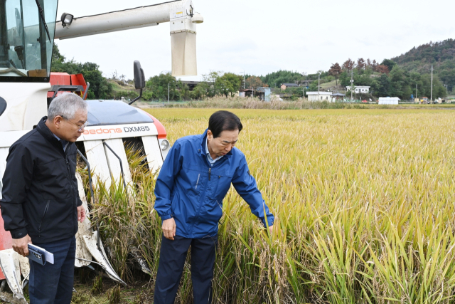 성 군수는 21일 농번기를 맞아 벼 수확이 지연되고 있는 영농현장을 방문해 농가를 격려하고 애로사항을 청취했다.
