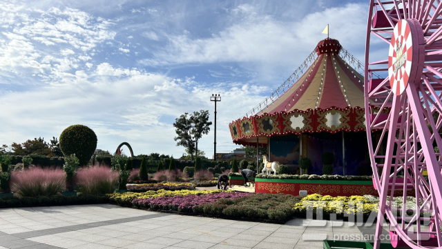 가장 눈길을 끄는 것은 중앙광장을 장식할 대형 국화 조형물 '회전목마'(가로 12m, 높이 10m)와 '대관람차'(가로 4m, 높이 4m)다.