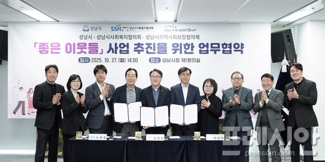 시는 이날 성남시사회복지협의회 및 지역사회보장협의체와 함께 ‘좋은 이웃들 사업 추진을 위한 업무협약’을 체결했다.