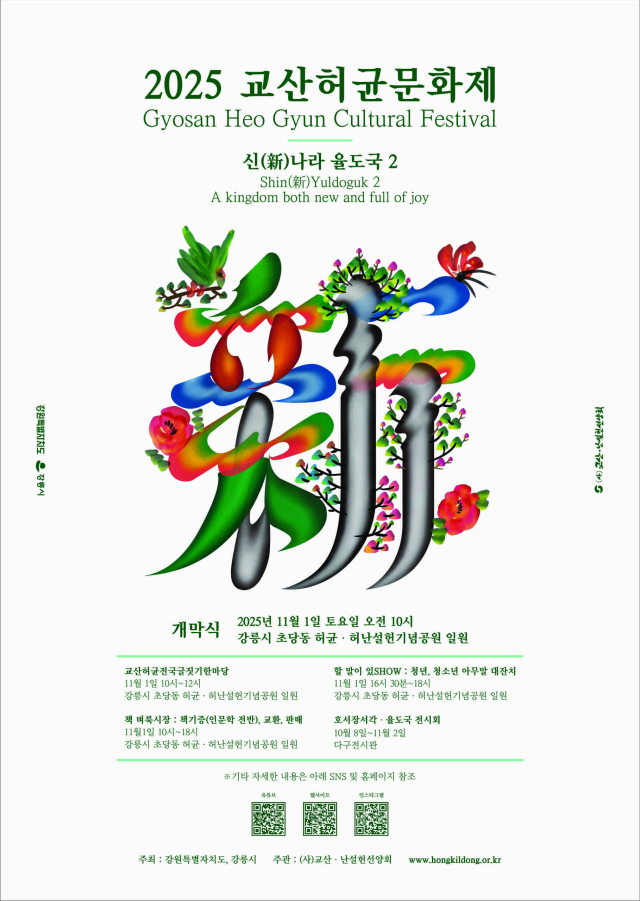이번 '교산허균문화제'는 교산 허균의 개혁 사상과 문학적 정신을 기리고 계승하는 자리로, 가을 정취가 짙게 물든 초당 솔밭에서 시민과 관광객이 함께 어우러지는 참여형 문화행사로 꾸며진다.