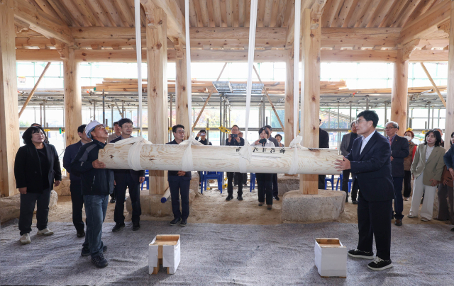 삼척시가 7일 조선시대 삼척의 행정과 문화 중심지였던 삼척도호부 관아(동헌)의 복원공사 현장에서 상량식을 거행했다.