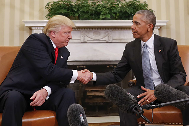 ▲ 2016년 대선 이후인 11월 10일(현지 시각) 백악관에서 만난 버락 오바마(오른쪽) 미국 대통령과 도널드 트럼프 당시 당선자 ⓒAP=연합뉴스