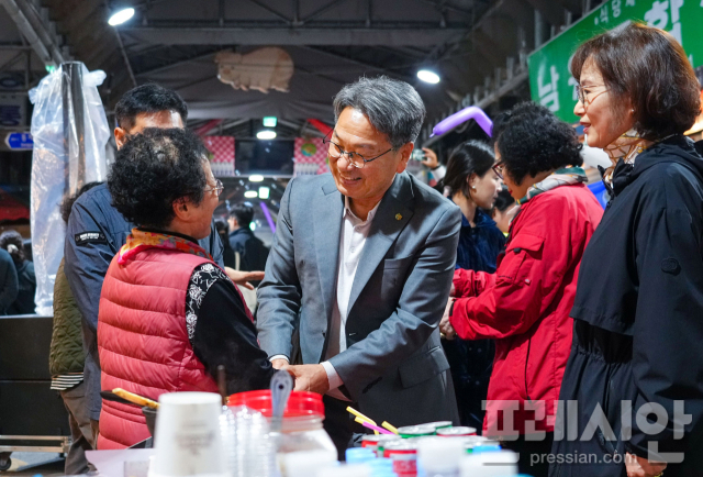 시에 따르면 강 시장은 시장 내 먹거리·수공예품·생활용품을 판매하는 상인들을 일일이 찾아 응원하고, 애로사항을 청취했다.