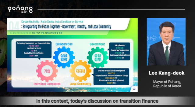 이 자리에서 이강덕 포항시장은 ‘A Green Future Emerging from Molten Steel’이라는 제목의 영상을 통해 포항의 녹색전환 정책을 소개했다.