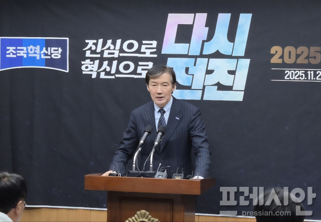 ▲17일 전북특별자치도의회에서 기자간담회를 연 조국혁신당 조국 당 대표 후보가 발언하고 있다. ⓒ프레시안(양승수)