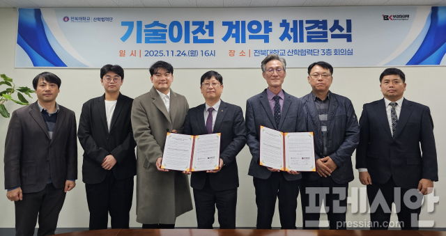 전북대 산학협력단(단장 손정민)은 24일 부경하이텍(대표 정종균)과 약 1억 원 규모의 기술이전 계약을 체결했다고 밝혔다.