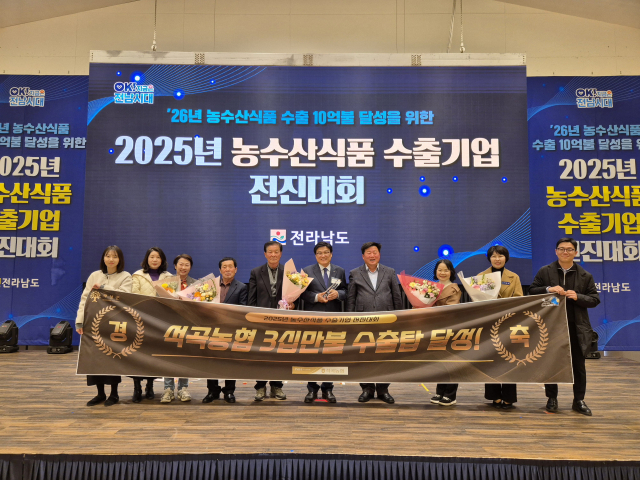 전남 곡성군(군수 조상래)은 '2025년 농수산식품 수출기업 전진대회'에서 석곡농업협동조합이 30만불 수출탑을 수상했다고 2일 밝혔다.