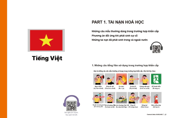 이번 안내서에는 현장에서 즉시 활용할 수 있는 정보들이 시각 중심으로 담겨 있다. △국내외 화학사고 사례와 원인 분석 △화재·누출 등 사고 유형별 대응 요령 △신고·초동조치·대피 등 단계별 행동요령 △화학물질별 위험성 △GHS(유해화학물질 분류·표시) 그림문자 해설 △개인보호구 착용법 등이 포함됐다. 글보다 그림 비중을 크게 높여 언어 장벽을 최소화한 것도 특징이다.